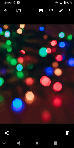 Once you’re viewing a photo in full screen, you have some options to work with it. You can delete, edit, or rename the photo. You can also set the photo as your phone’s wallpaper or a contact photo. Tap favorite to add the photo to your Favorites album, or tap share to share it.