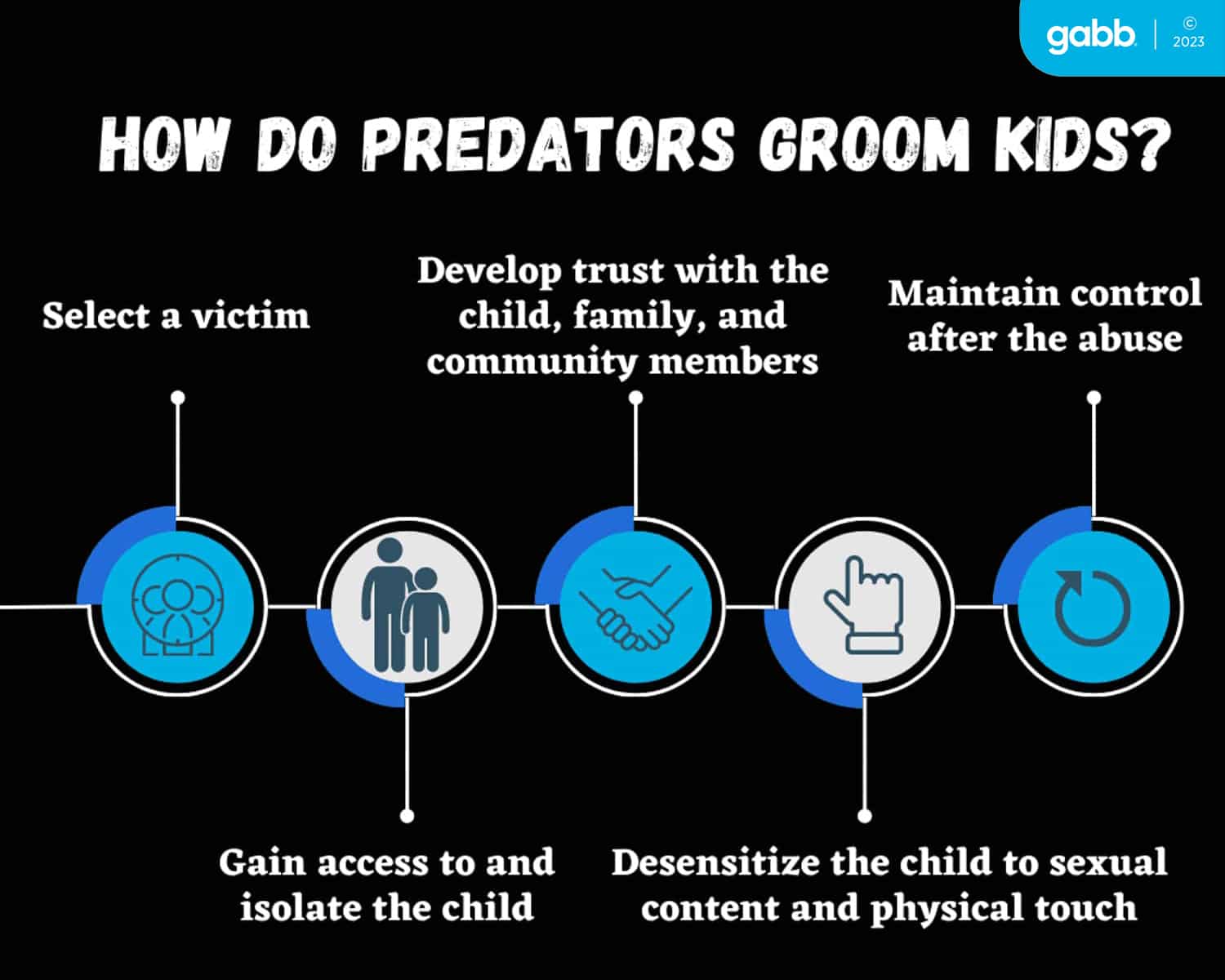 Predators skillfully manipulate a child into feeling sympathetic and friendly toward them rather than on the alert. Once a predator has secured trust, they can send the child inappropriate content, and convince them to reciprocate.